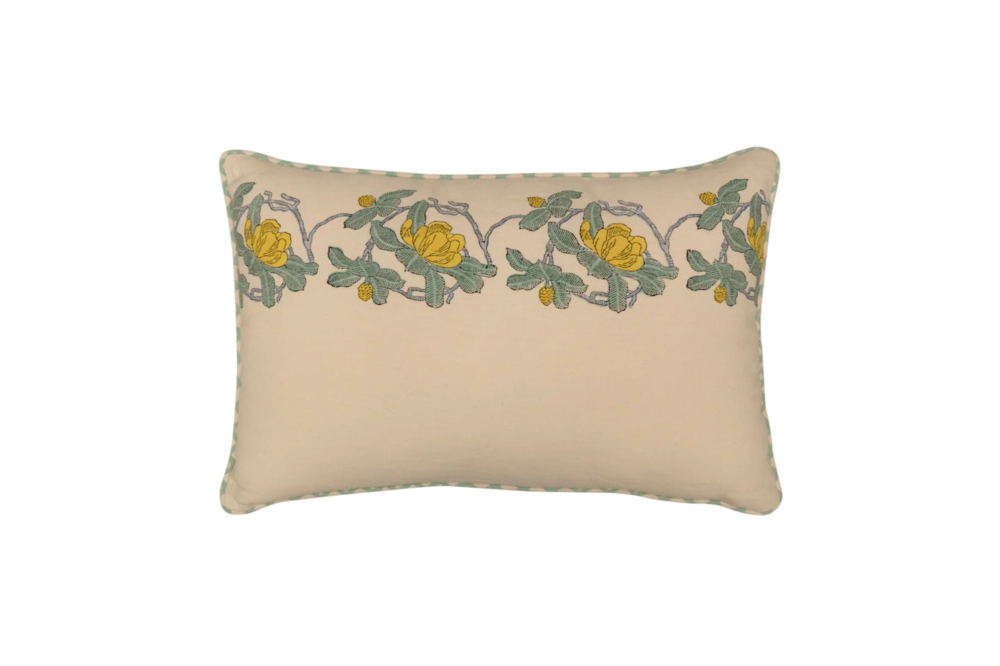Featuring traditional Sanganeri block printing, this cushion adds heritage charm to contemporary spaces. Crafted from a breathable cotton-linen blend.