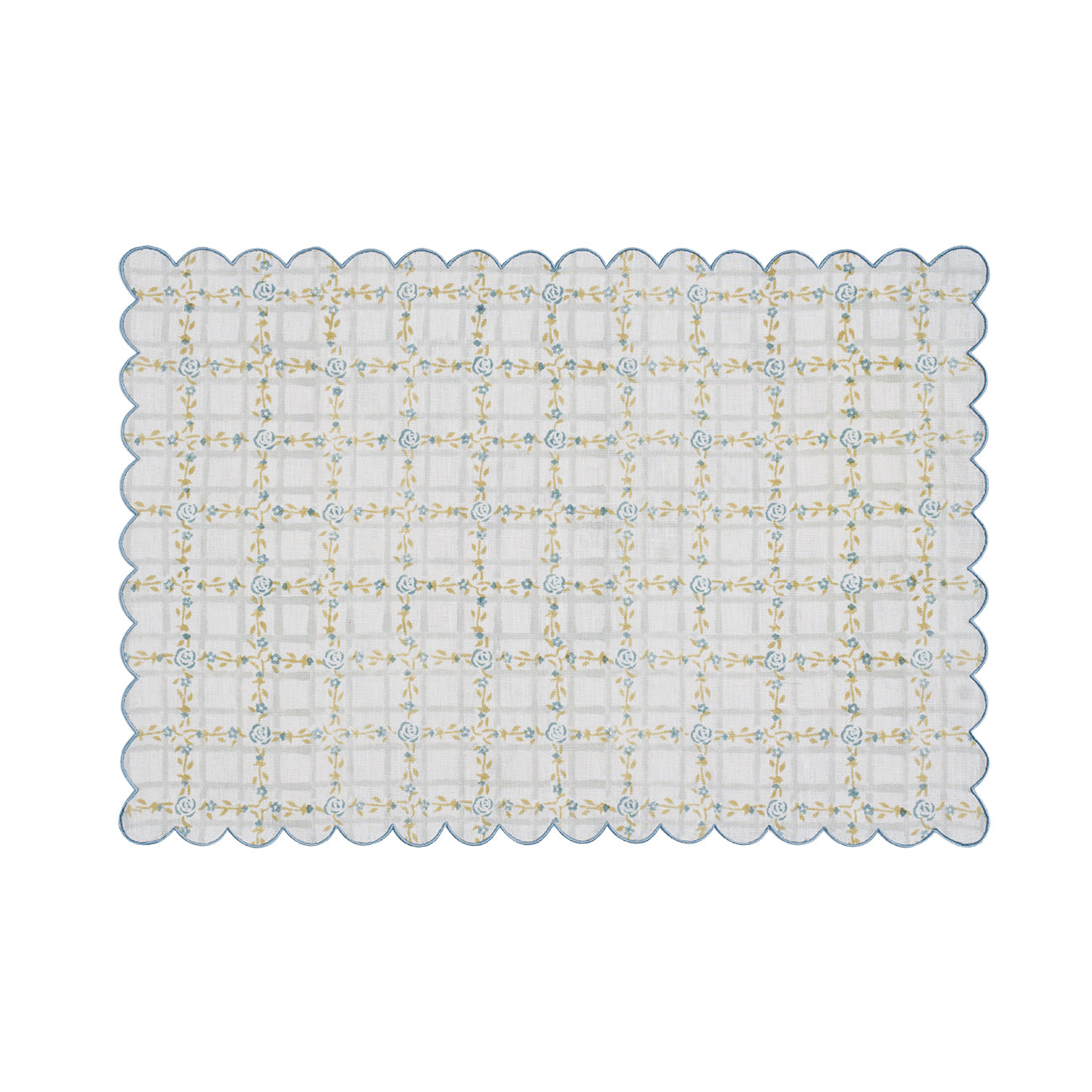 Masterfully hand block printed by skilled artisans each placemat is a canvas of intricate English roses, blossoming in bright, eco-friendly colors that capture the essence of a quaint English garden. The standout feature is the elegantly hand-embroidered scallop border, adding a layer of sophistication and luxury to your table setting.
