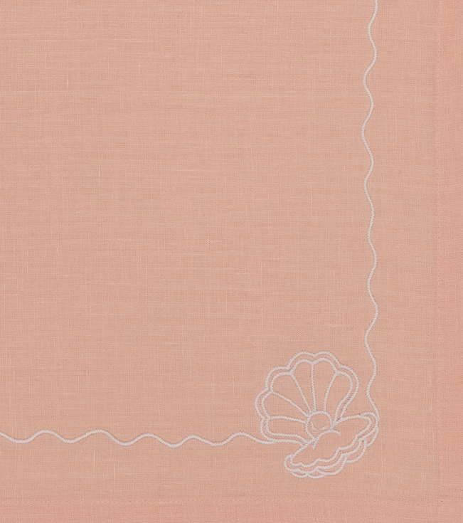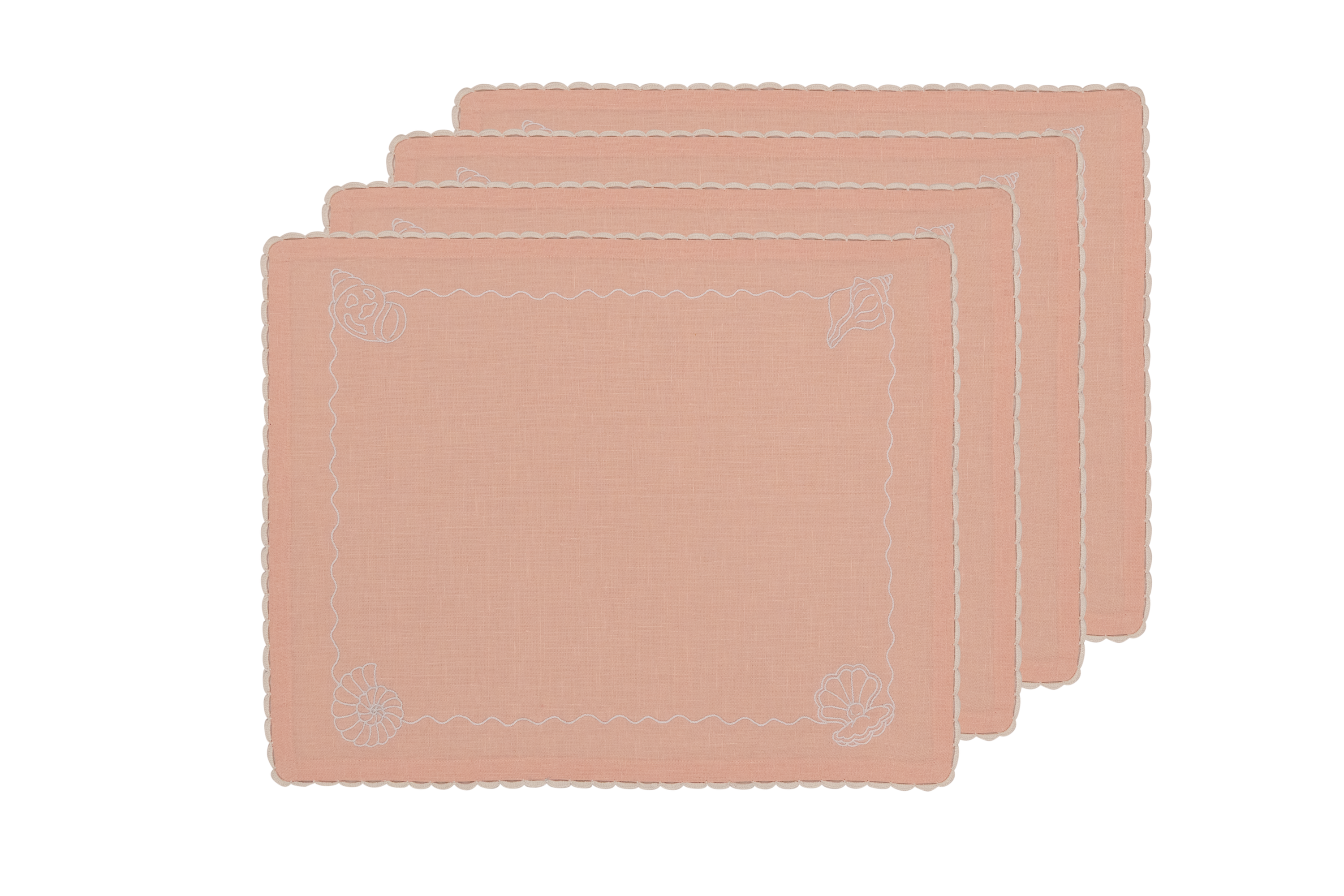 A charming set of four linen placemats combining crochet and hand embroidery, designed to bring softness and colour to everyday dining.