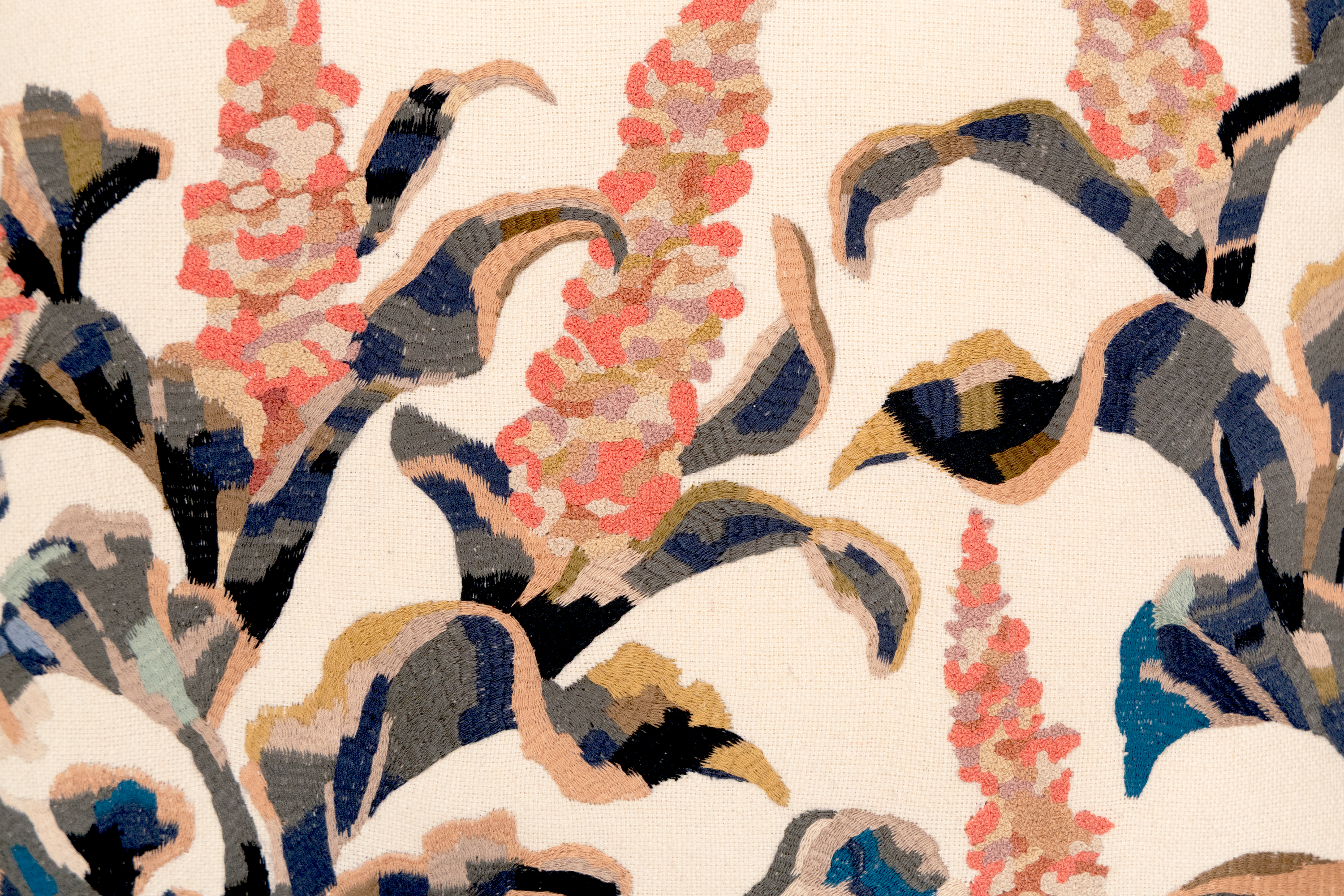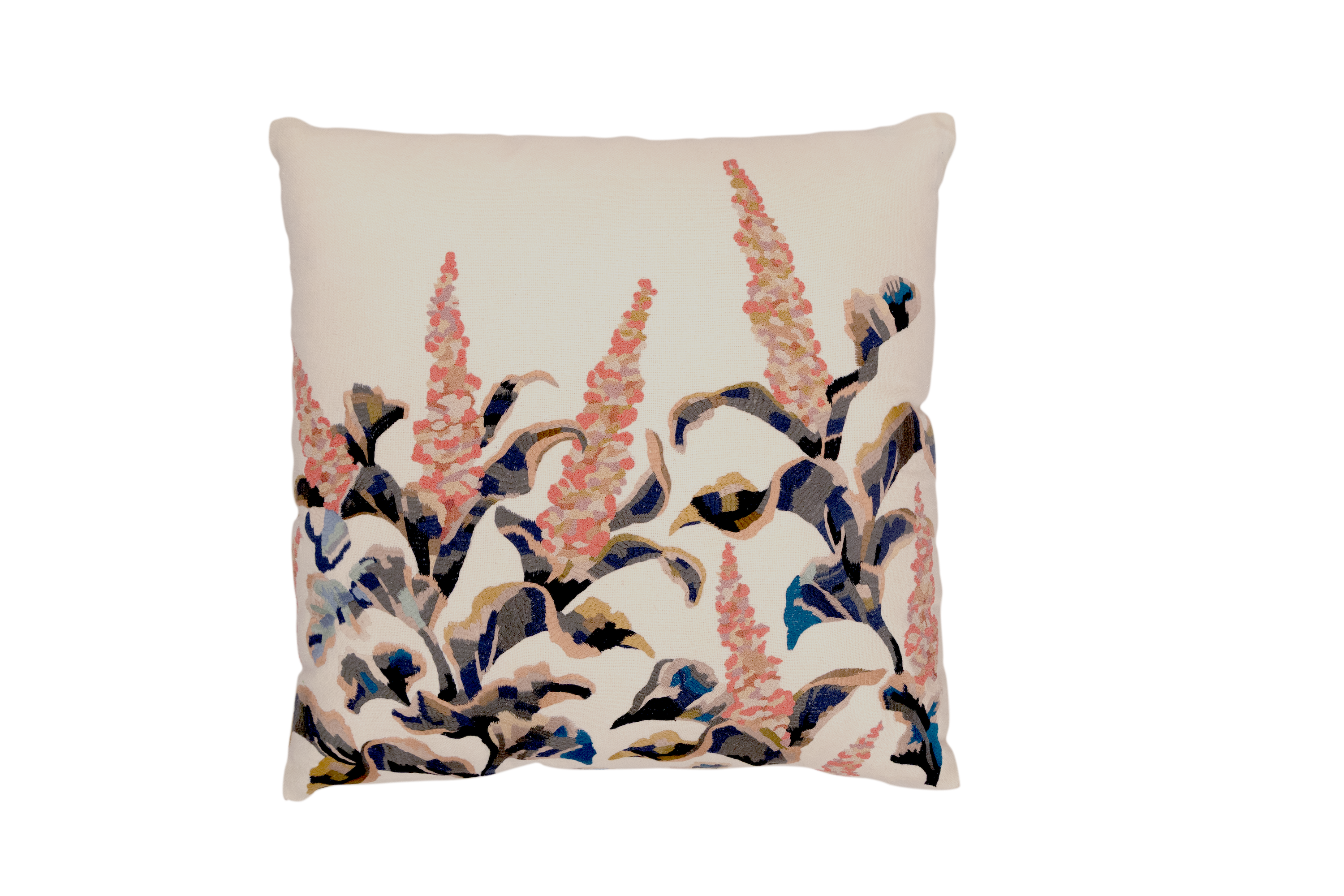 This green linen cushion cover is delicately hand embroidered, offering a fresh yet refined accent rooted in traditional craft.