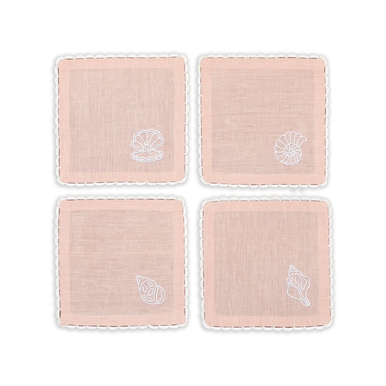 Bring a touch of coastal elegance to your table with these beautifully handcrafted cocktail napkins. Made from soft, peach-colored 100% linen, each napkin is adorned with delicately hand-embroidered seashell motifs — capturing the quiet beauty of the shore in fine, detailed stitching.